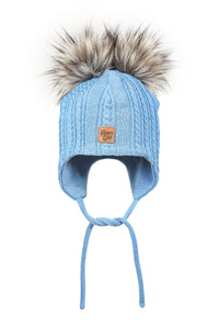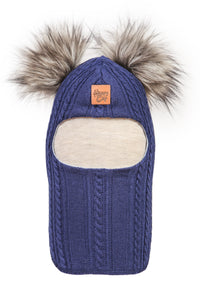 Palmikko Merinovilla Kypärämyssy Tupla Furry, Tummansininen