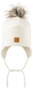 Merinovilla Kid Beanie Karvatupsulla, Valkoinen