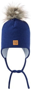 Merinovilla Kid Beanie Karvatupsulla, Tummansininen