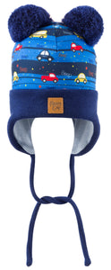 Lasten Merinovilla Double Beanie Autokuosi, Tummansininen