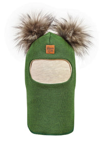 Palmikko Merinovilla Kypärämyssy Tupla Furry, Sammal