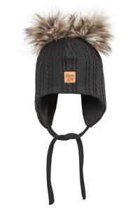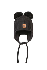 Palmikko Merinovilla Kid Beanie Tupsuilla, Musta