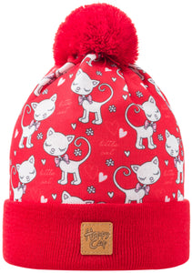Lasten Merinovilla Double Beanie Kissakuosi, Punainen  - Kauppias