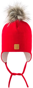 Merinovilla Kid Beanie Karvatupsulla, Punainen  - Kauppias