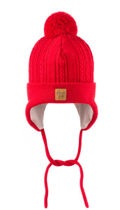 Merinovilla Kypärämyssy Furry Palmikkoneulos, Punainen  - Kauppias