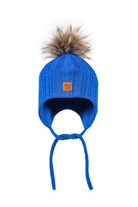 Palmikko Merinovilla Kypärämyssy Tupla Furry, Sähkönsininen  - Kauppias