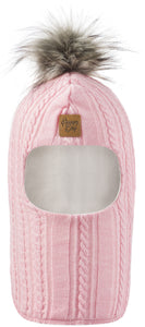 Merinovilla Kypärämyssy Furry Palmikkoneulos, Vaalea Pinkki
