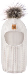 Merinovilla Kypärämyssy Furry Palmikkoneulos, Valkoinen